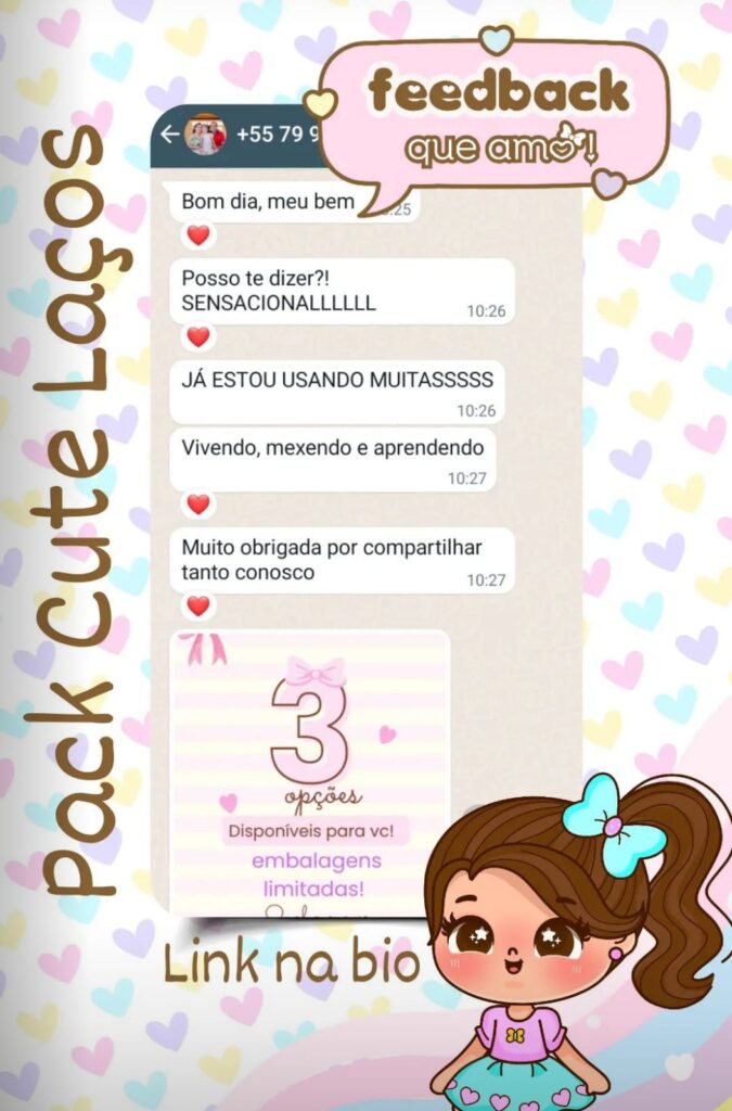 Com o PACK CUTE LAÇOS você terá acesso a artes prontas, com conteúdo direcionado para o seu nicho e conquistar um perfil lindo e profissional.